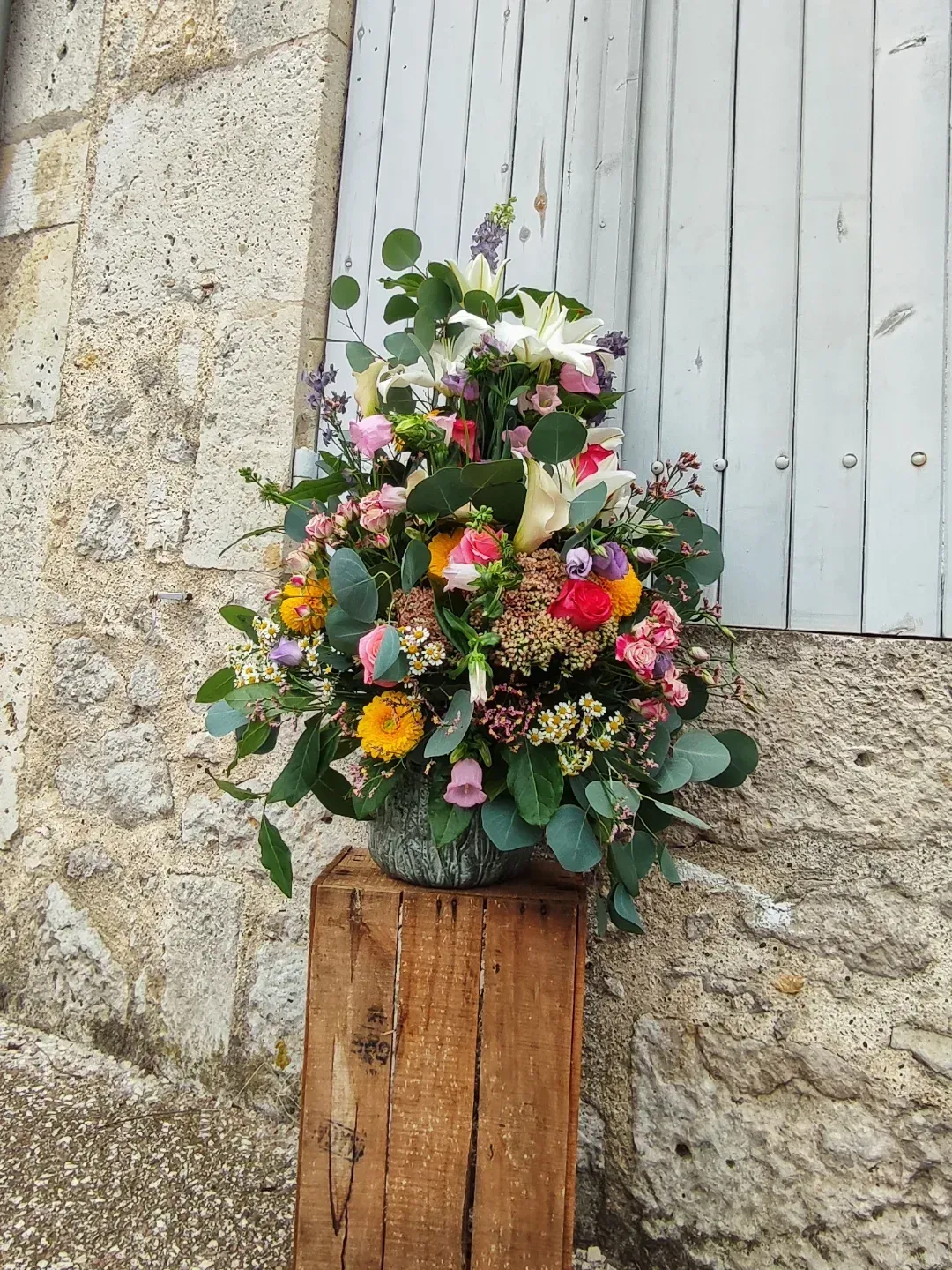 Nous privilégions des fleurs adaptées à la saison afin de garantir une meilleure tenue et un rendu harmonieux. Chaque composition est préparée à la commande et ajustée avant livraison.